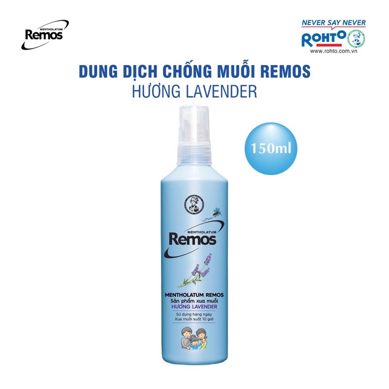 Xịt Chống Muỗi Remos Hương Lavender 150mlCác loài côn trùng như muỗi thường sinh sôi và phát triển nhanh chóng, đặc biệt là vào mùa hè. Xịt Chống Muỗi Remos Hương Lavender đến từ thương hiệu Rohto vớ hương lavender dễ chịu sẽ giúp bảo vệ làn da mỏng manh của bé và cả bạn. Sản phẩm có tác dụng chống lại các loại côn trùng, loại bỏ các nguy cơ nhiễm bệnh do côn trùng cắn