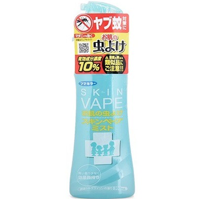 Xịt chống muỗi Skin Vape là dạng xịt phun sương dùng để xịt lên da vùng tay, chân, và cổ, hiệu quả trong việc xua đuổi muỗi và nhiều loại côn trùng khác. Sản phẩm nhẹ nhàng, tiện dụng bảo vệ da bé khỏi muỗi và các loài côn trùng đốt. Thành phần các chất hữu hiệu, có tác dụng trong thời gian dài. Sản phẩm không chứa các chất tẩm. Trong chai xịt có các thành phần giữ ẩm có nguồn gốc từ thực vật, không chứa các chất tẩm màu, gây mùi, hay gây dị ứng cho da. Tăng cường độ a xit nhẹ nhờ pH6 tương đồng với làn da bình thường khoẻ mạnh.Hướng dẫn sử dụng :