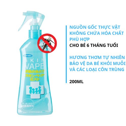 Giới thiệu Xịt Chống Muỗi Skin Vape Nhật Bản 200ml Đuổi Muỗi và Côn Trùng Nhật Bản 200ml LIKE TOKYO