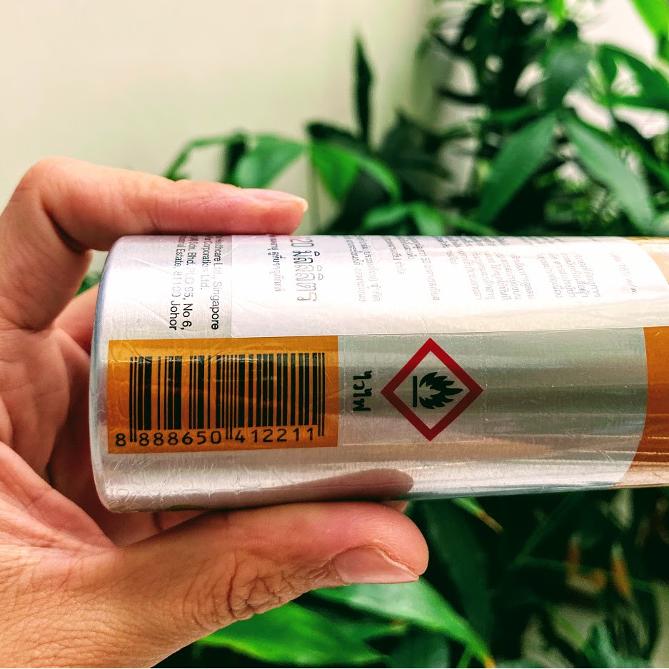 Quy cách đóng gói: Dạng chai xịt 3 ngôn ngữ: Tiếng Hoa, Tiếng Anh và Tiếng Thái