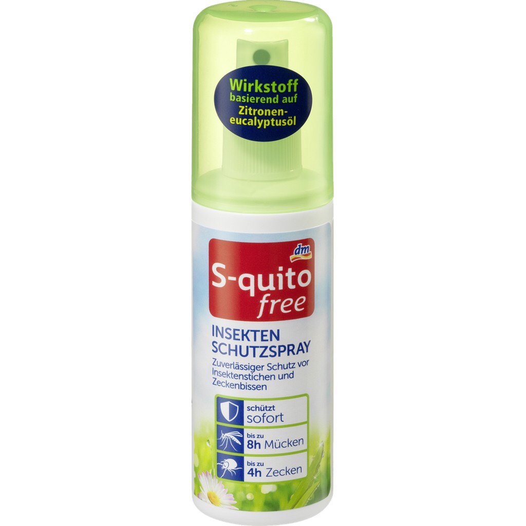 - Xịt chống côn trùng S-quito free là biện pháp bảo vệ đáng tin cậy chống lại muỗi và côn trùng đốt. Chống lại muỗi và bọ ve đến 6 giờ . Với thành phần hoạt tính từ lá bạch đàn chanh.