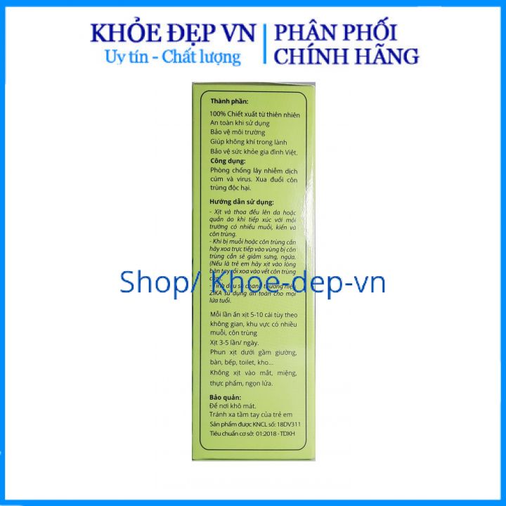 Xịt và thoa đều lên vùng da dễ tiếp xúc với mỗi trường có muỗi( hoặc côn trùng), có tác dụng đuổi muỗi,phòng ngừa các bệnh do muỗi gây ra.