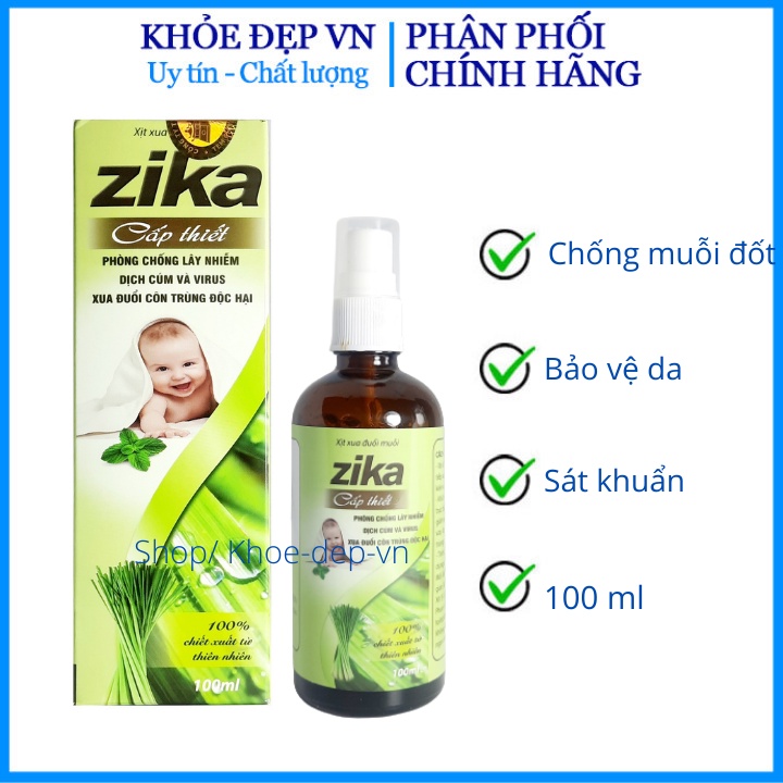 Xịt chống muỗi ZIKA xua đuổi côn trùng, tránh muỗi đốt – Hộp 1 chai 100ml