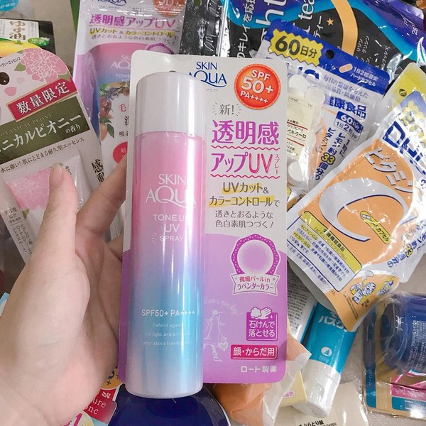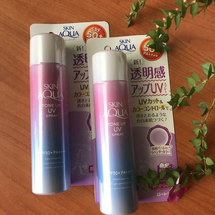 Xịt Chống Nắng Rohto Skin Aqua Tone UP Spray SPF50 nâng tông da SIÊU NHẸ, SIÊU TỰ NHIÊN. Nhìn da kiểu sáng hồng, trong trong với đều màu hơn. Khi xịt xong chạm vào da thấy RÁO MỊN, không hề bị rít hay bóng nhẫy. Bảng thành phần cũng lành tính lắm đó nên da nhạy cảm cũng bon chen được Loại da phù hợp: dành cho da nhạy cảm nhờ bảng thành phần lành tính, ráo mịn, không hề rít bóng.Kết cấu: lỏng, nhẹ mắt, chống nước, chống mồ hôi.