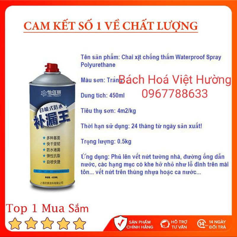 💯💯Sản phẩm giúp hàn gắn mọi vết nứt ,khe hở ,lỗ nhỏ li ti. Giúp chống thấm bề mặt như trần nhà, mặt bờ tường nứt, sàn nhà, mái tôn...Đặc điểm của chất polyurethane: Khả năng chịu mài mòn tốt. Chịu được áp lực tốt hơn hẳn các loại cao su thông thường. Chịu được các tác động của thời tiết. Bao gồm không bị oxy hóa, chịu được ánh sáng mặt trờiCực kỳ chắc, không thể rò rỉ, bình xịt chống dột chống thấm đa năng giải quyết tất cả các khó khăn cho gia đình bạn một cách nhanh chóng.Giãn nở theo tất cả các vật liệu bám vào vá được trong tất cả các môi trường ẩm ướt, khô, nóng , lạnh, nước, dầu mỡ.Tiết kiệm thời gian, không cần đập đi xây lại, không cần gọi thợ sửa chữa chuyên nghiệp.