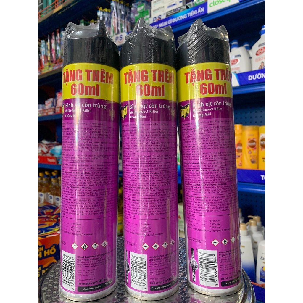 +Hiện tại đợt nhập hàng này công ty chỉ tặng thêm 60ml chai xịt Raid không mùi. Chương trình tặng theo đợt nên khách hàng mau chóng đặt hàng không sẽ hết hàng KM nhé !
