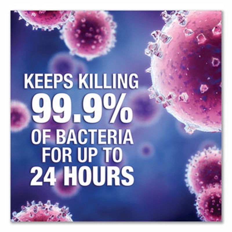 ✓ Tiêu diệt 99,9% vi khuẩn trong 5 phút và tiếp tục tiêu diệt trong suốt 24 giờ. Làm sạch và bảo vệ các bề mặt lên đến 24 TIẾNG ngay cả khi các về mặt đã bị chạm hay tiếp xúc nhiều lần
