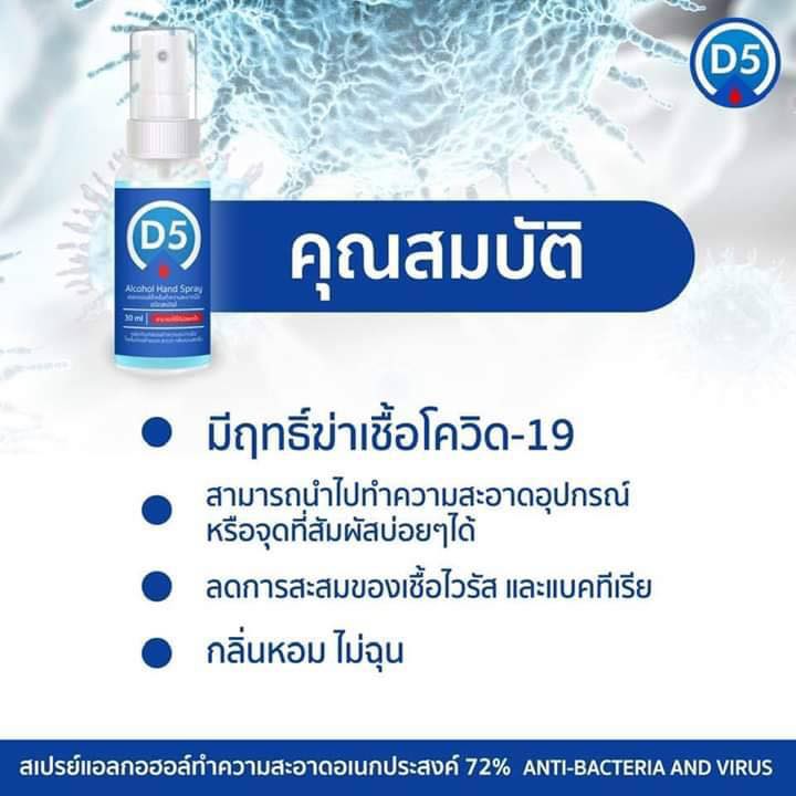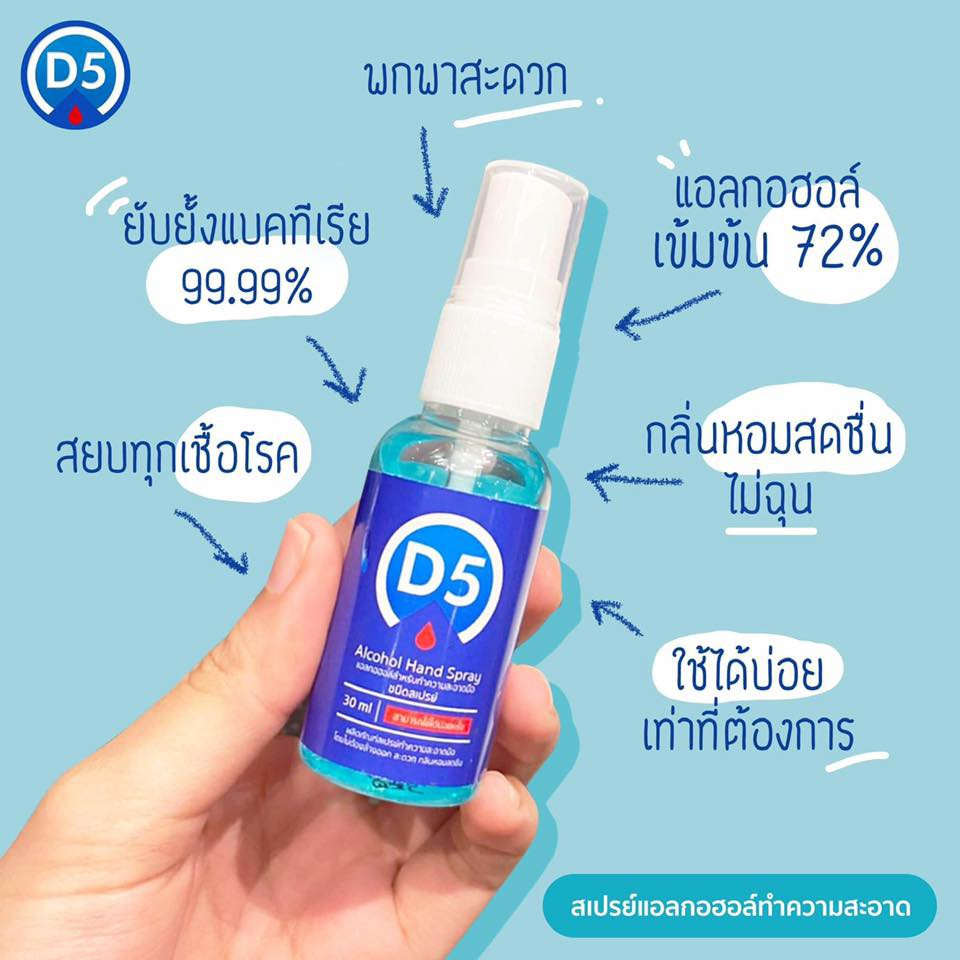 Giới thiệu Xịt diệt khuẩn D5 Alcohol Hand Spay 72% 30ml Thái Lan