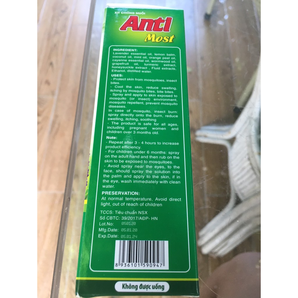 Xịt chống muỗi Zika Anti Most, tránh sốt xuất huyết, tinh dầu thảo dược, dùng được cho trẻ dưới 6 thángSản phẩm có mùi tinh nhẹ nhàng: