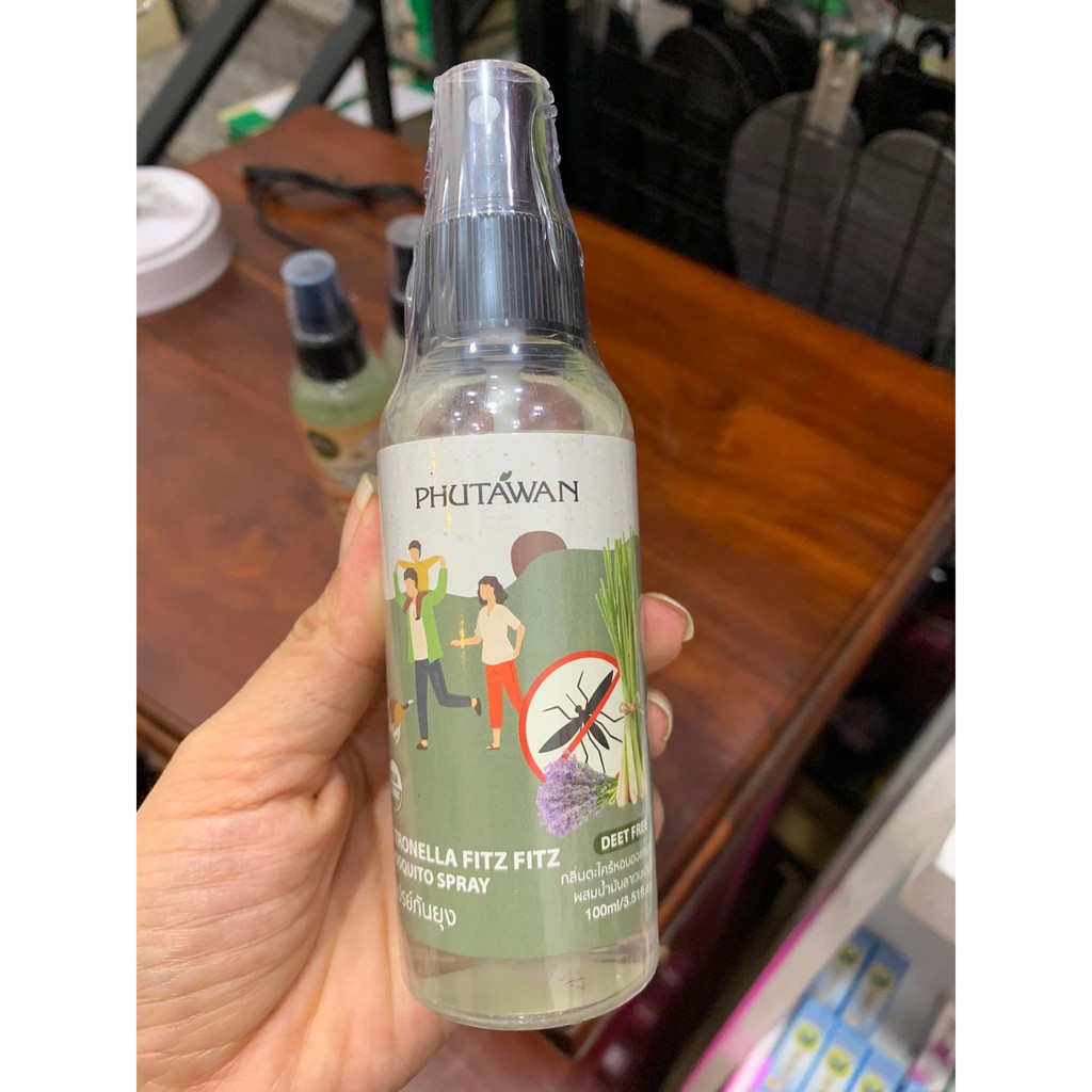 Tên sản phẩm: Tinh dầu sả xịt muỗi và côn trùng Phutawan CitronellaXuất xứ: Thái Lan, thiết kế dạng xịt