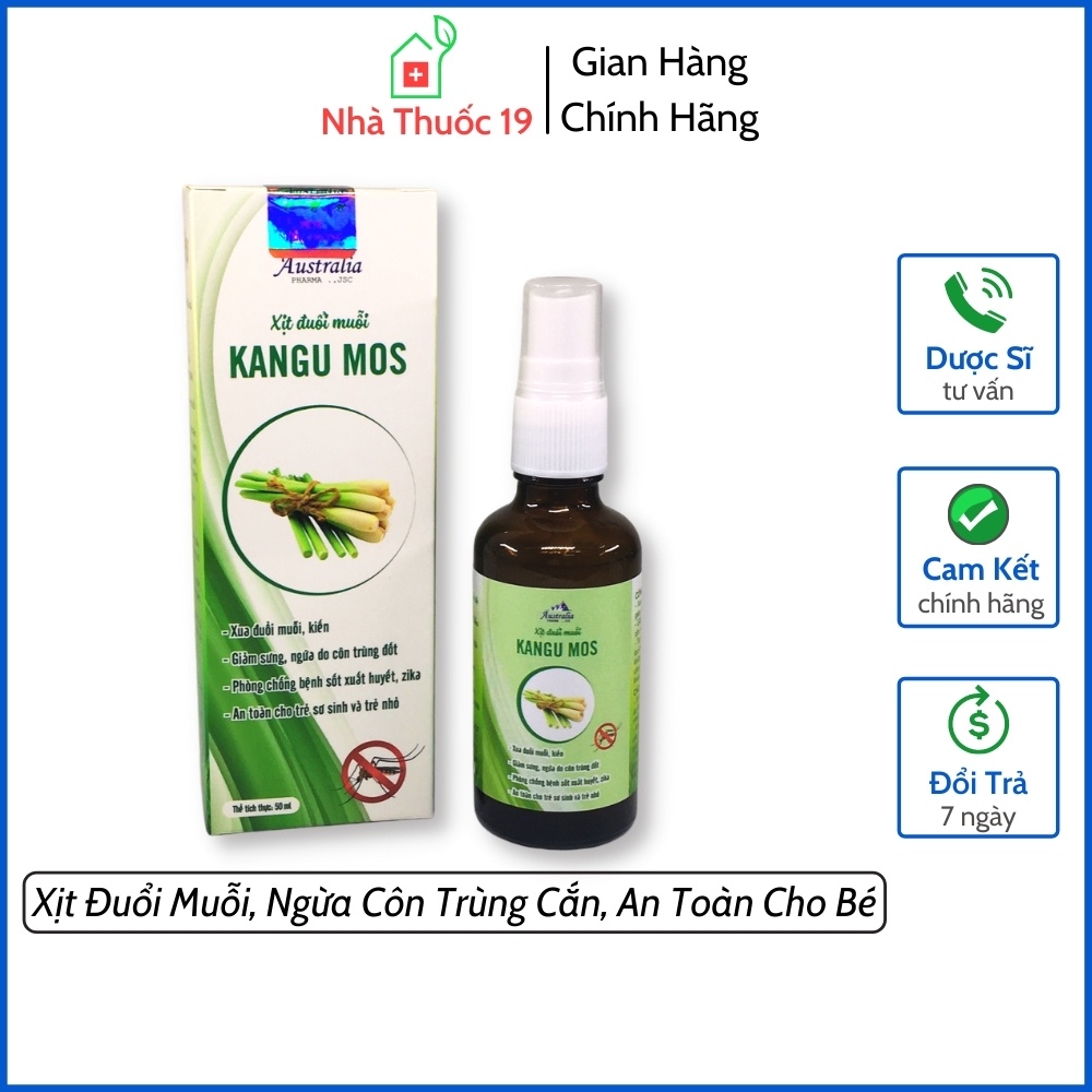 Giới thiệu Xịt Đuổi Muỗi Kangu Mos - Chống Muỗi Đốt, Ngăn Côn Trùng Cắn, Thành Phần 100% Tự Nhiên, An Toàn Cho Bé (Lọ 50ml)