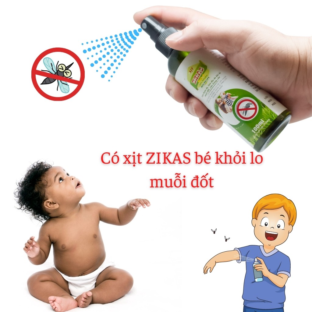 Xịt đuổi muỗi zikas 100% natural chai 100ml✔ Ngăn ngừa muỗi đốt và các loại côn trùng khác như kiến ba khoang, ruồi, gián,…