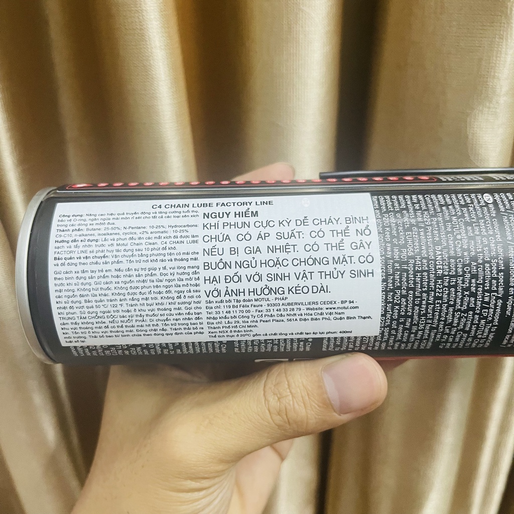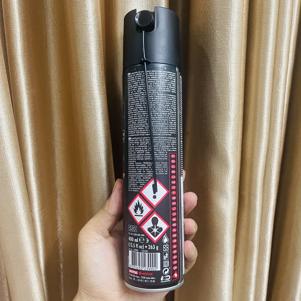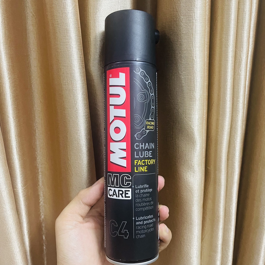 - Motul C4 Factory Line 400ml là dầu xích xe máy tốc độ Có màu trắng và Aerosol dính