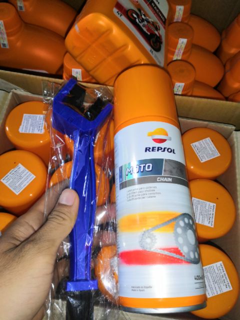 Ô tô > Dầu nhớt và phụ gia ô tô > Mỡ & Chất bôi trơn || XỊT DƯỠNG SÊN REPSOL MOTO CHAIN CAO CẤP TẶNG 1 BÀN CHẢICòn hàng
