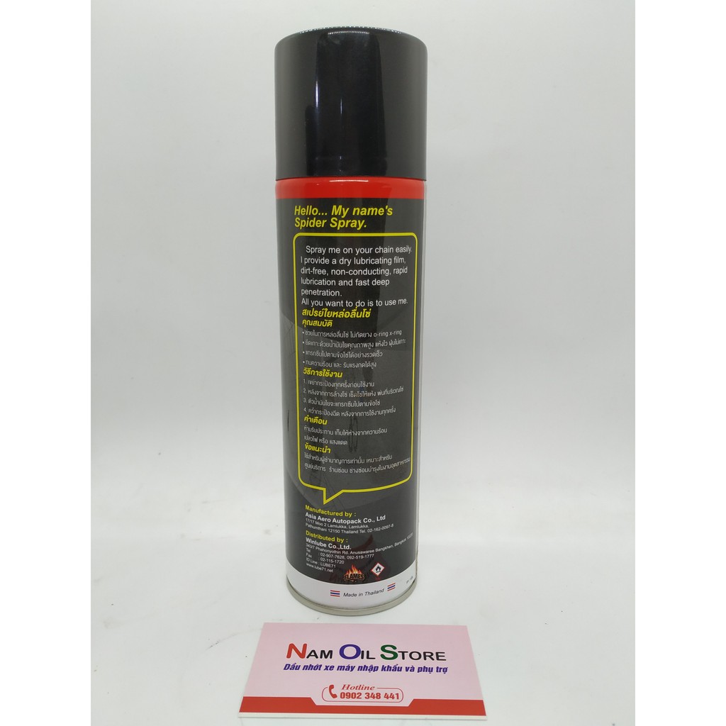 Ô tô > Dầu nhớt và phụ gia ô tô > Mỡ & Chất bôi trơn || Xịt Dưỡng Sên SPIDER 600ml chống văng tốtCòn hàng