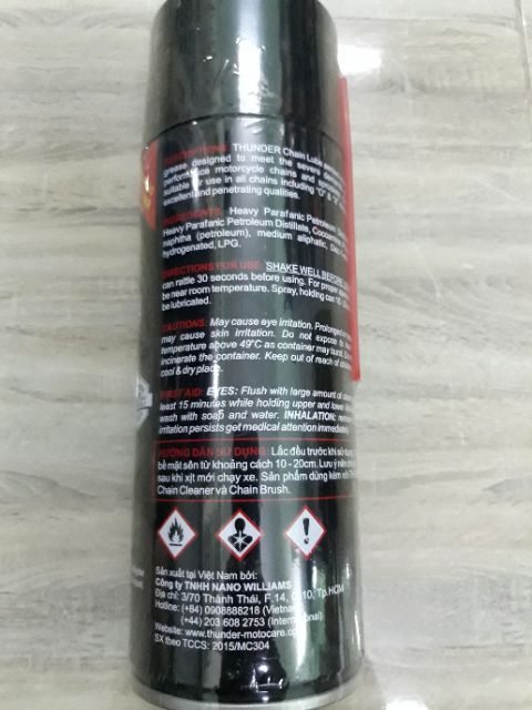 Ô tô > Dầu nhớt và phụ gia ô tô > Mỡ & Chất bôi trơn || Xịt dưỡng sên Thunder Chain Lube 400ml TTRCòn hàng
