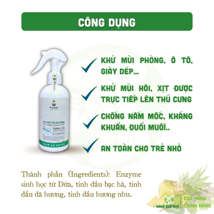 Xịt Khử Mùi Đa Năng Hữu Cơ FUWA 3e Hương Bạc Hà Khử Mùi Thú Cưng Ô Tô Quần Áo Đuổi Muỗi 300ml1. Tên sản phẩm: Xịt khử mùi đa năng FUWA3e 🍍