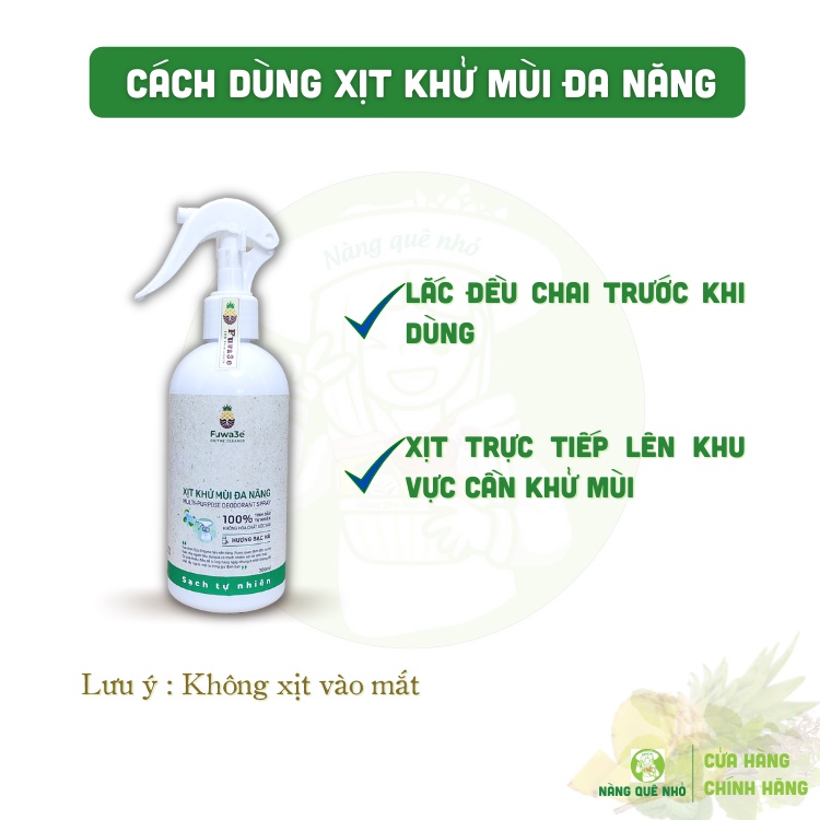 - Sản xuất trên dây chuyền đạt tiêu chuẩn TCVN 5603:2008 và ISO 9001: 2015. - Sản phẩm Xịt khử mùi đa năng FUWA3E cam kết: + 0% Hương liệu + 0% Chất tạo màu + 0% Hóa chất độc hại