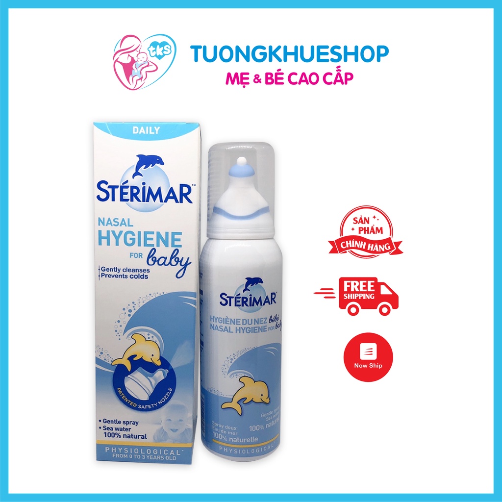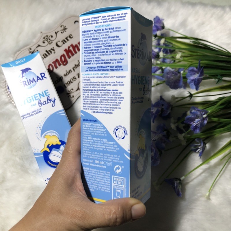 Nước Xịt muối biển Cá heo Sterimar 100ml Được chiết xuất từ dòng nước biển tinh túy được lấy từ biển được lấy tại vịnh Saint-Malo (Pháp) ở độ sâu tối thiểu 5m & cách xa bờ trên 10km mang lại sự an toàn cao nhất dành cho bé. Đây cũng là dòng sản phẩm vệ sinh mũi, họng cho bé được các mẹ tin dùng dành cho bé.