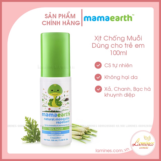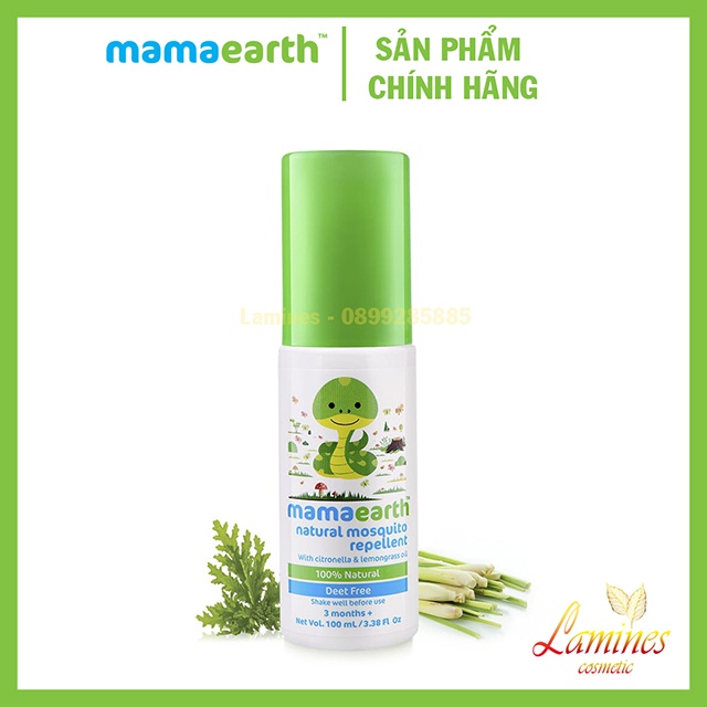 Giới thiệu Xịt Muỗi, Nguồn Gốc Tự Nhiên Chiết Xuất Dầu Xả, Bạc Hà 100% Mosquito Repellent Mamaearth 100ml và 40ml