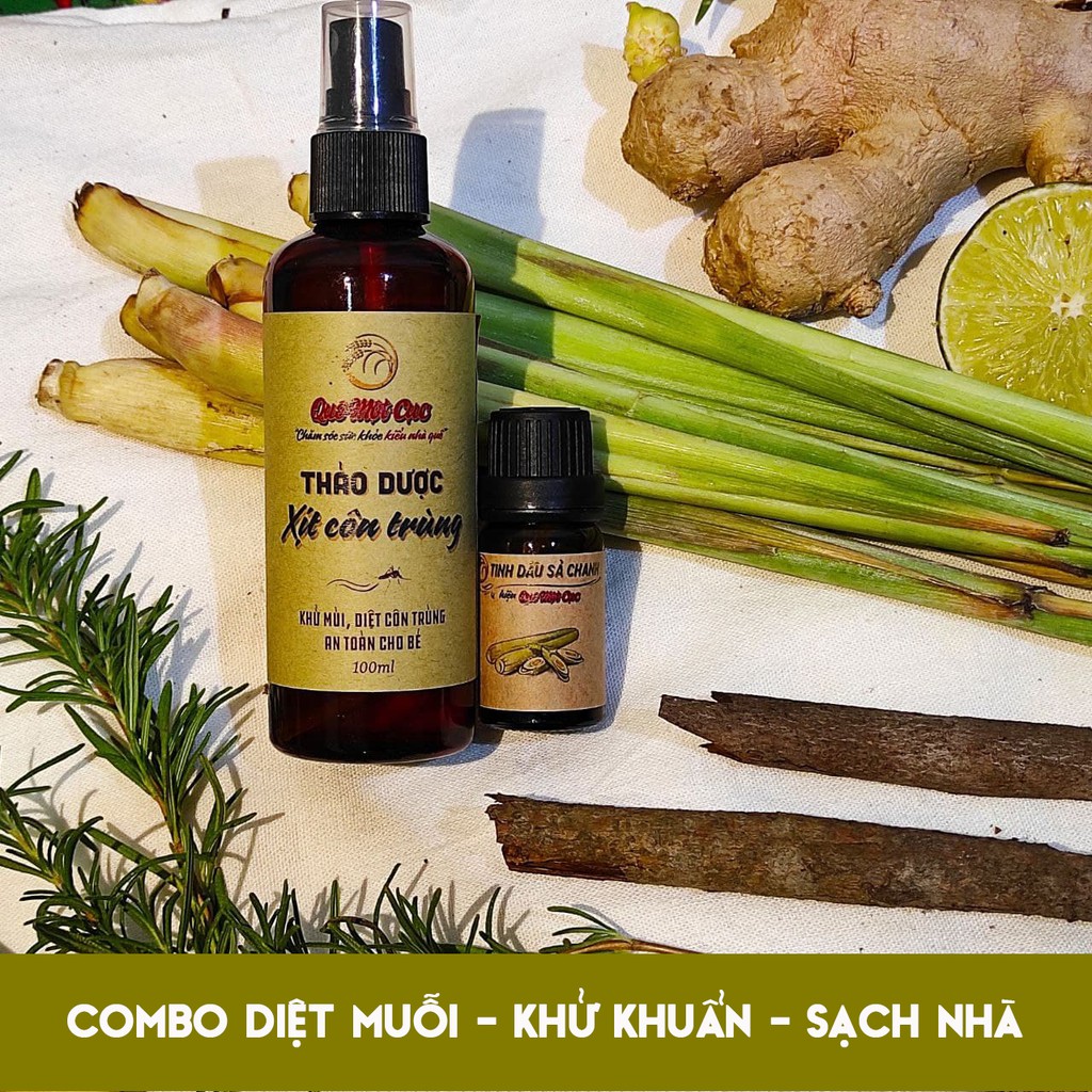 Xịt muỗi thảo mộc, thảo dược xịt côn trùng an toàn cho trẻ nhỏ, mẹ bầu QUÊ MỘT CỤC 100ml (handmade)