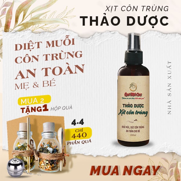 Giới thiệu Xịt muỗi thảo mộc, thảo dược xịt côn trùng an toàn cho trẻ nhỏ, mẹ bầu QUÊ MỘT CỤC 100ml (handmade)