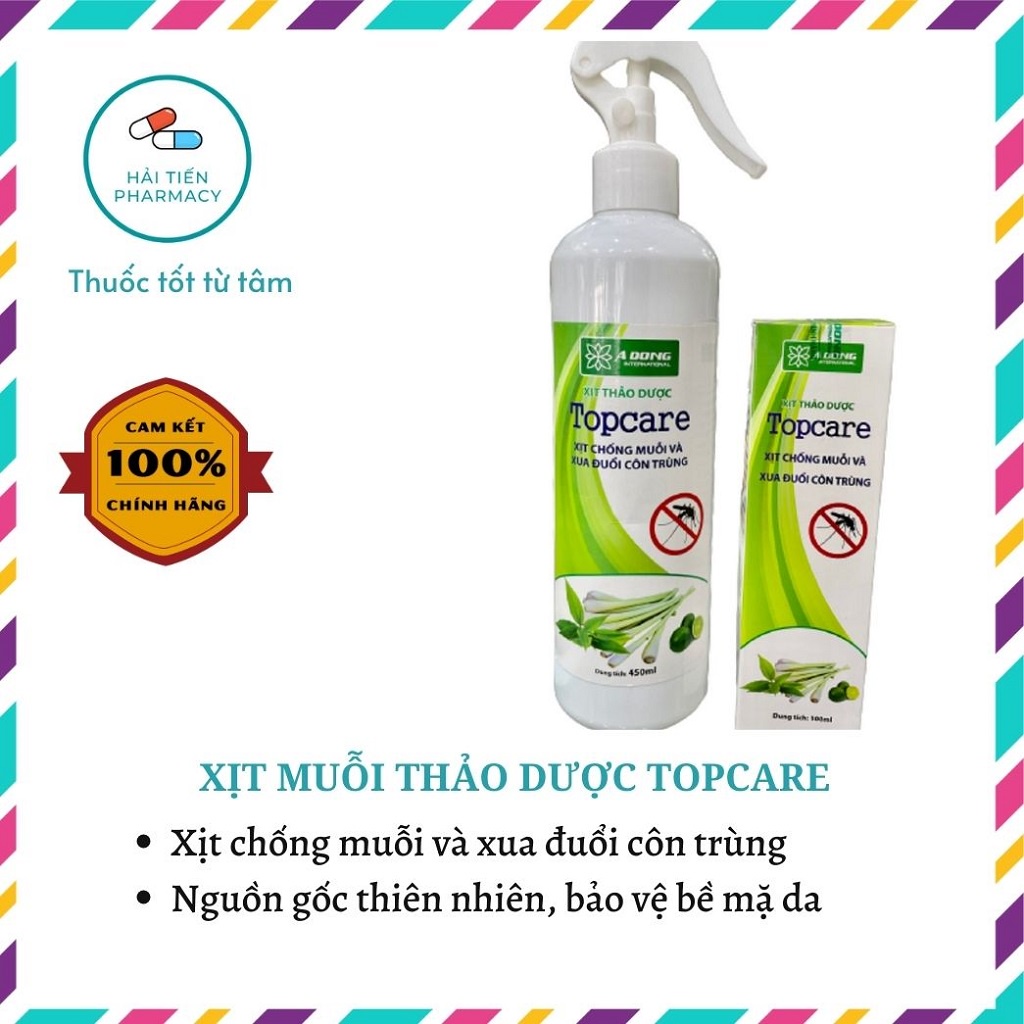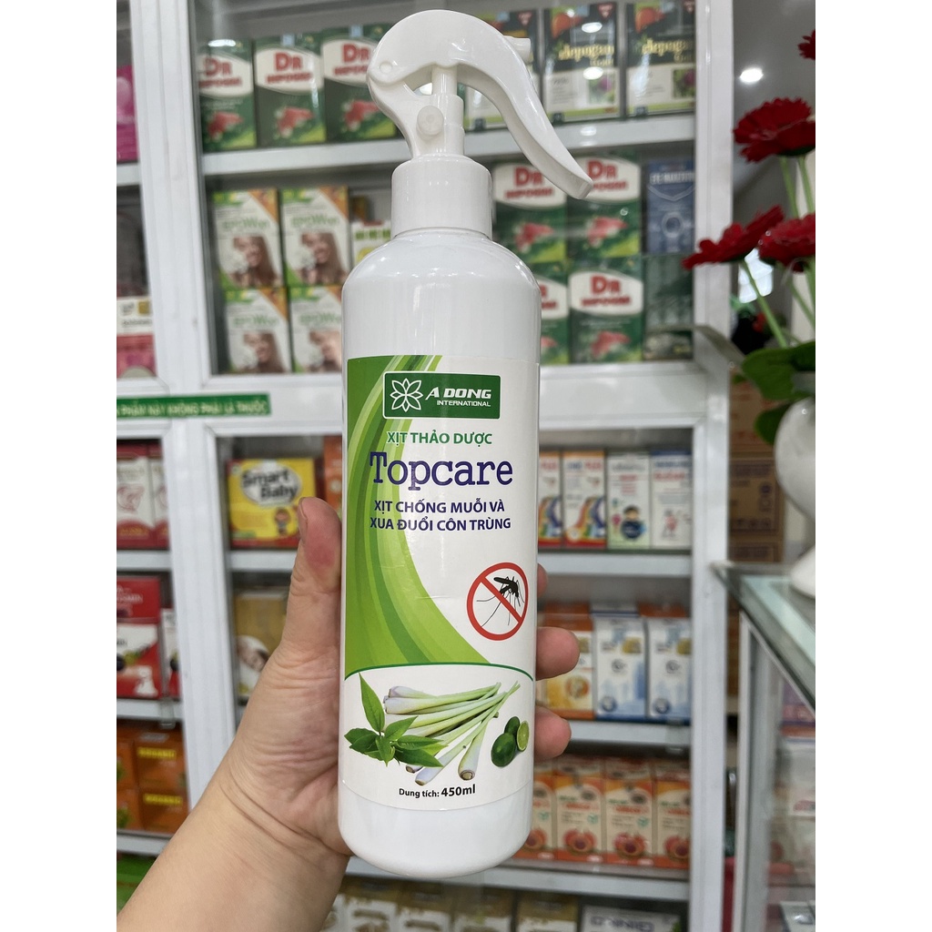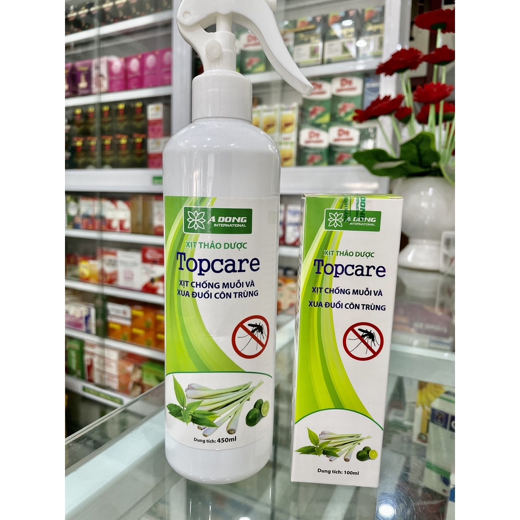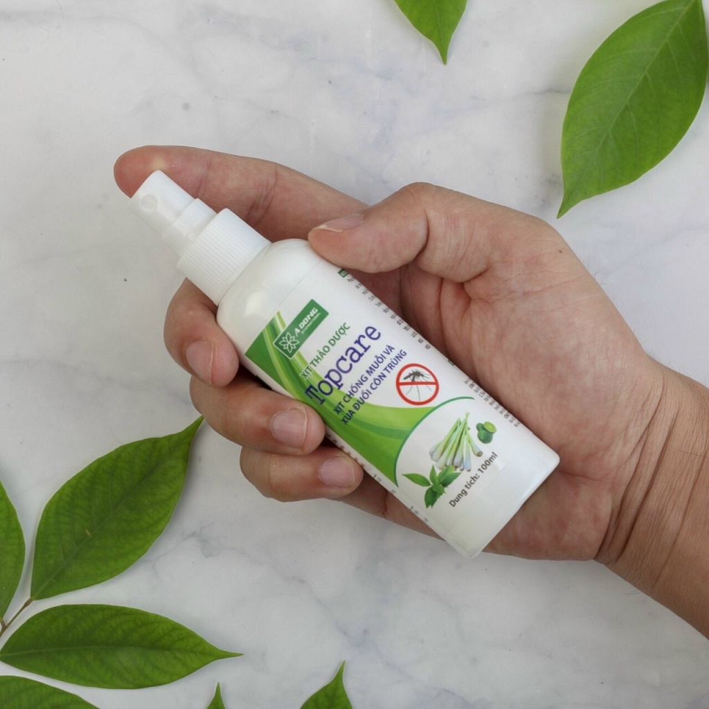 Xịt muỗi xua đuổi côn trung thảo dược Topcare hương xả chanh chai 100ml và 450ml