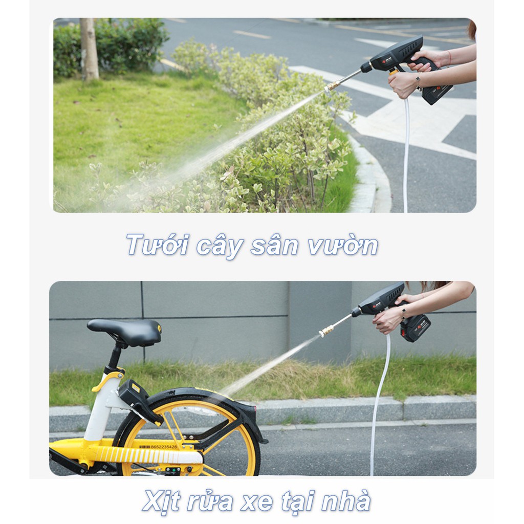 Nhà cửa & Đời sống > Dụng cụ & Thiết bị tiện ích > Dụng cụ > Máy rửa áp lực nước || Bộ Xịt Rửa Xe Di Động Cực Mạnh Pin 21V 4400mAh 30Bar (Full Option) - Home and GardenCòn hàng