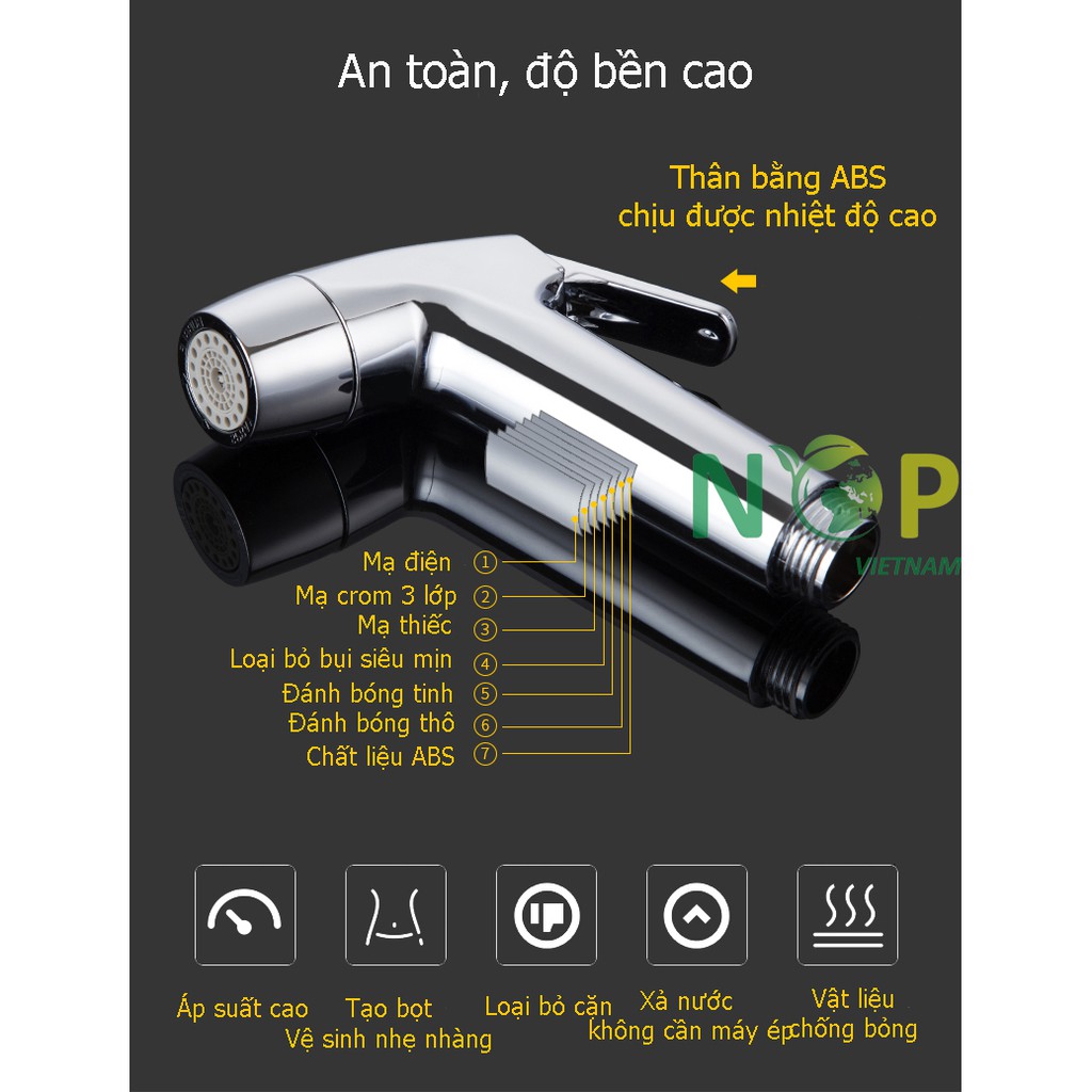 - Chất liệu: ABS, mạ 9 lớp
