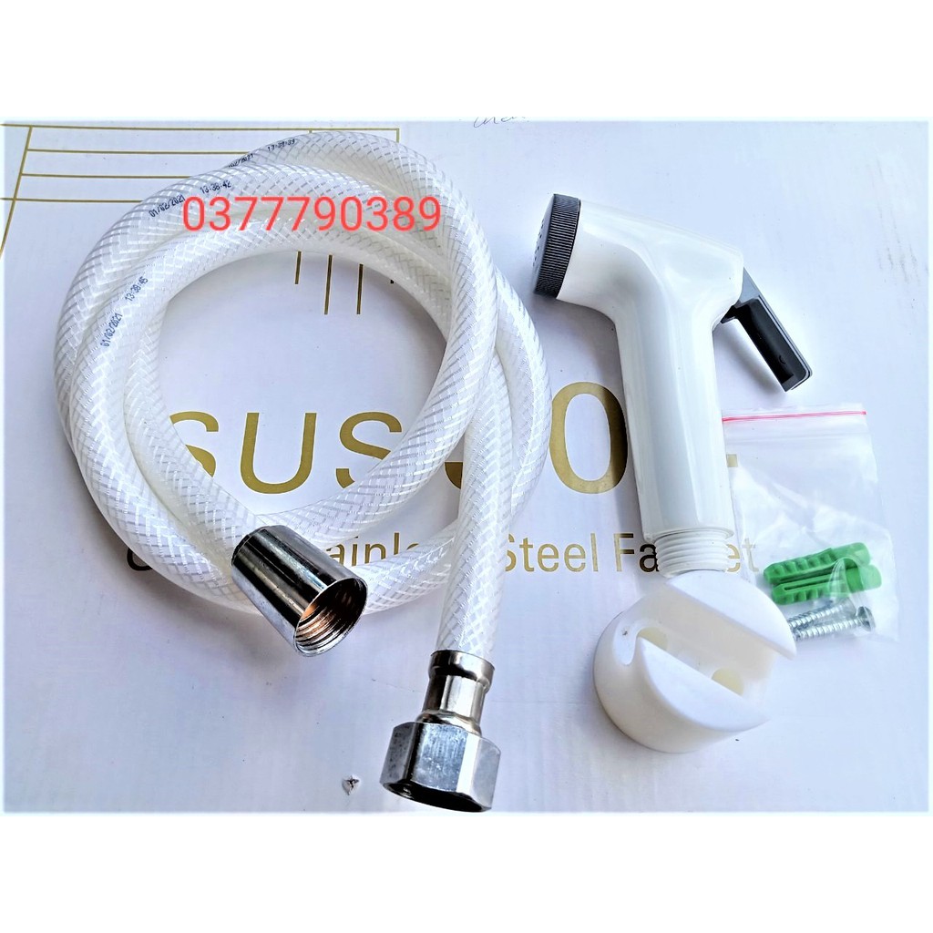 Dây xịt dài 1,2m loại dây nhựa lưới chịu áp cao 2 đầu tán vặn inox,đầu xịt bằng nhựa, độ bóng cao dễ vệ sinh, - Tay cầm vệ sinh tạo áp lực nước tốt nên khi ta xả nước, nước rất mạnh, thổi bay mọi vết bẩn cứng đầu nhất, giúp nhà vệ sinh luôn sáng bóng.- Bộ sản phẩm gồm: đầu xịt nhựa, 1 dây dẫn nhựa, 1 cài và 2 vít.