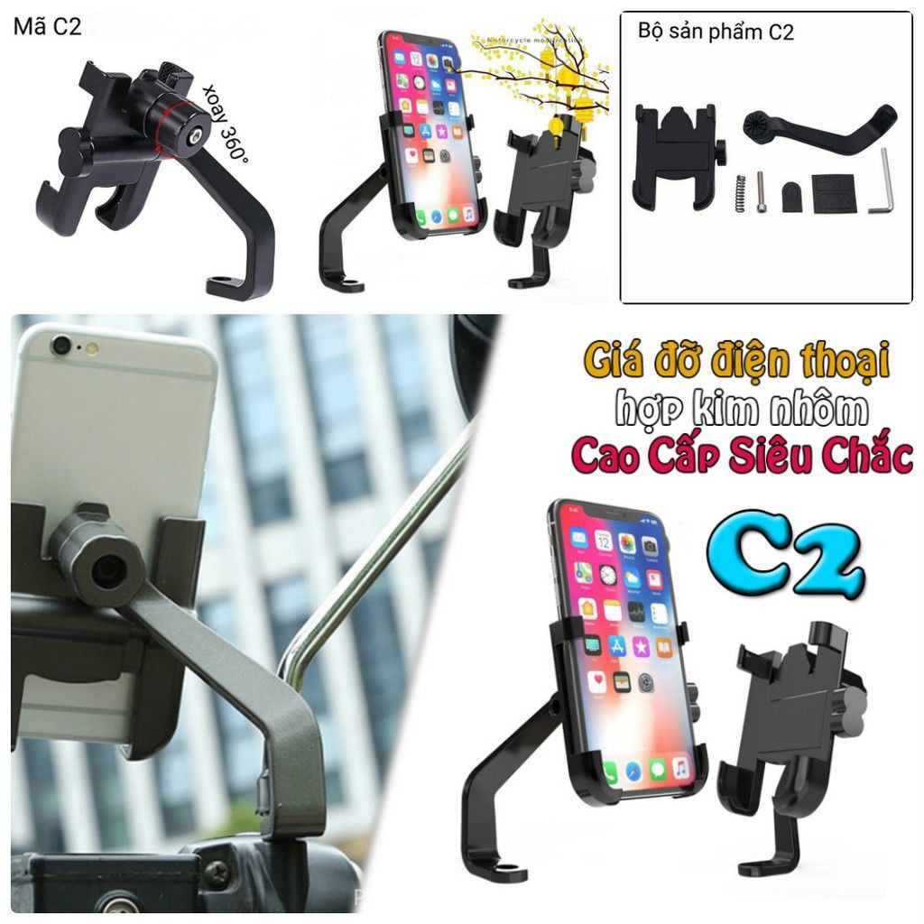 *** Gần đây có 1 số Shop đã copy toàn bộ sản phẩm của Shop để lừa đảo và lấy thông tin cá nhân nên quý khách vui lòng chat trực tiếp trên Shopee hoặc Z@lo/HotLine: 037.688.1080 để mua hàng và xem thêm sản phẩm tại: https://shopee.vn/carrot.store2711 ***Giá Đỡ - Kẹp Điện Thoại Gắn Xe Máy Inox C2 Chống Rung, Chống Cướp Cực Chắc Chắn