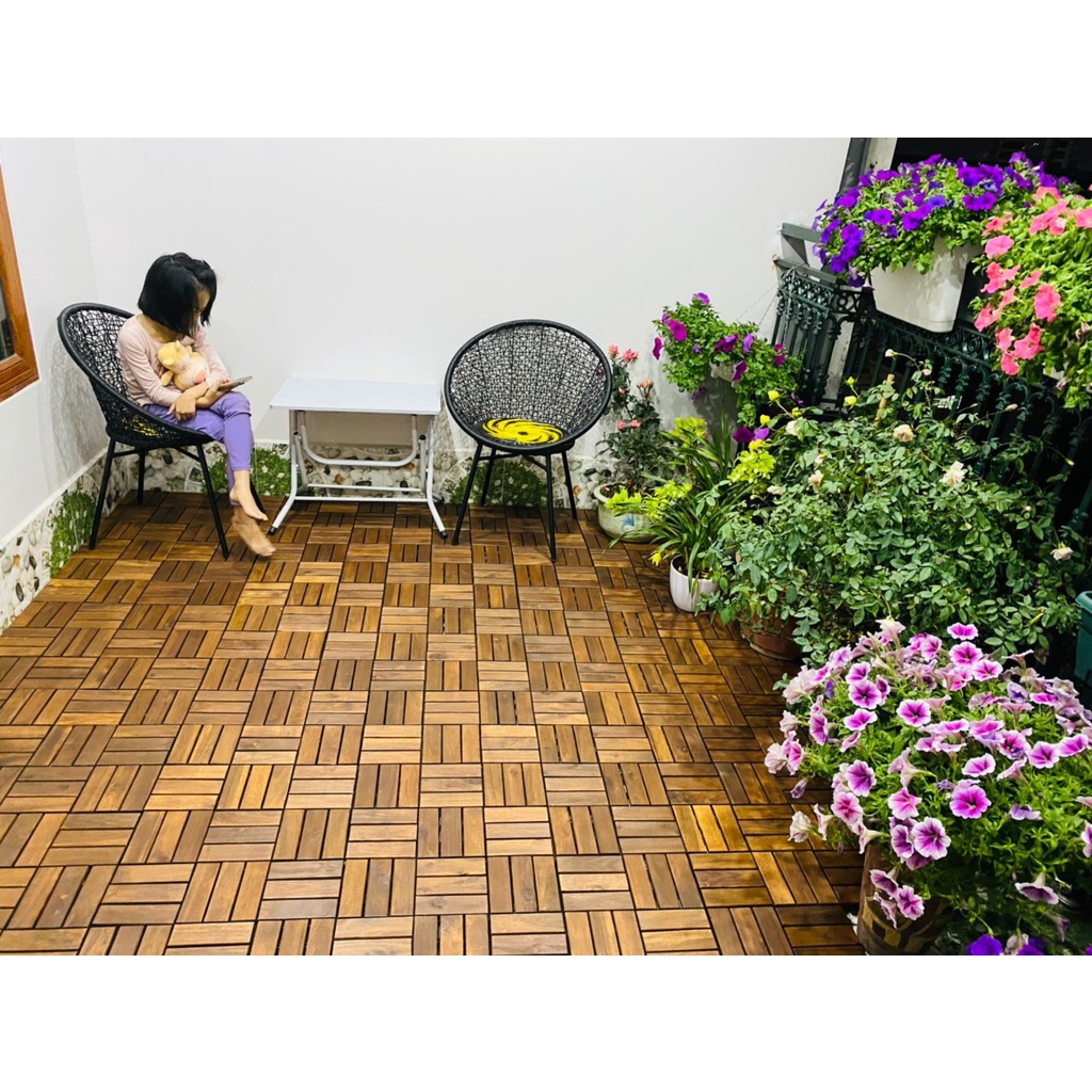 Nhà cửa & Đời sống > Dụng cụ & Thiết bị tiện ích > Mái & sàn || [XK] Viên Gạch Gỗ Tự Nhiên Ngoài Trời Tiêu Chuẩn - Sàn gỗ vỉ nhựa ngoài trời 12 nan (30x30x2.5cm, 1m2=11vỉ) home decorCòn hàng