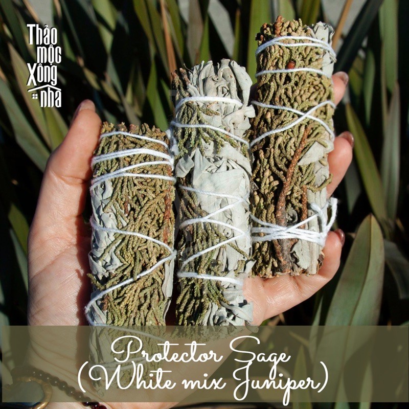 XÔ BẢO VỆ thanh tẩy nhà cửa, bản thân, khôi phục sự cân bằng (White sage mix Juniper) - THẢO MỘC XÔNG NHÀ