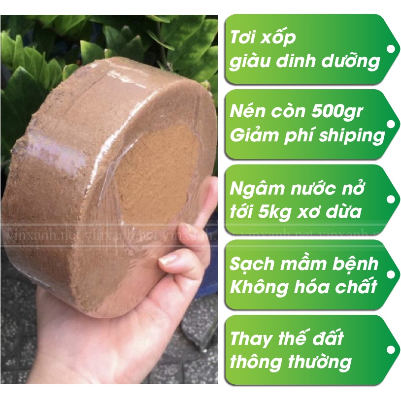 Xơ dừa nén - đất nén hữu cơ xơ dừa cục lớn 0.5kg đã xử lý SẠCH MẦM BỆNH - KHÔNG HÓA CHẤT dùng trồng rau hoa củ quả sạch