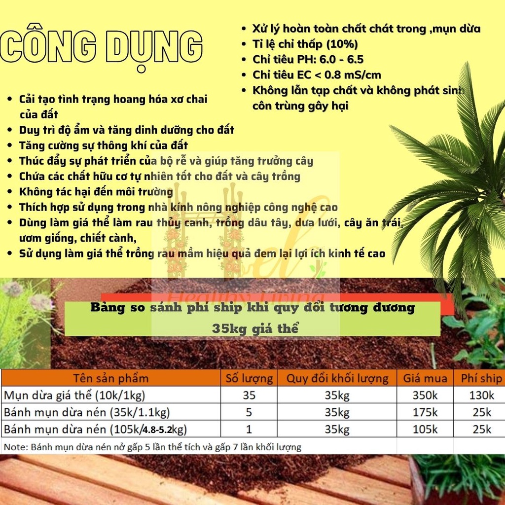 ++ Viên nén mùn dừa 5kg là sản phẩm có đến 90% mụn dừa, đã qua xử lý EC, PH