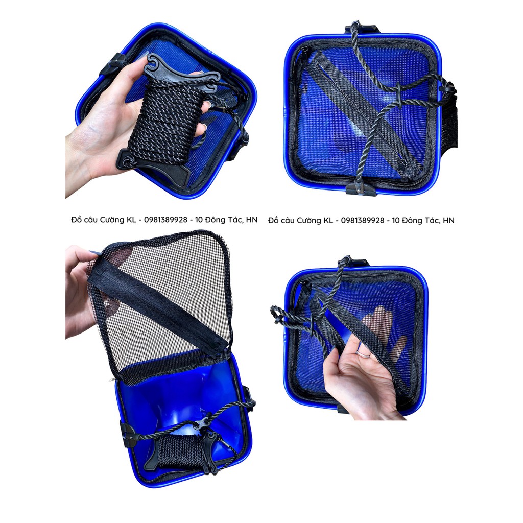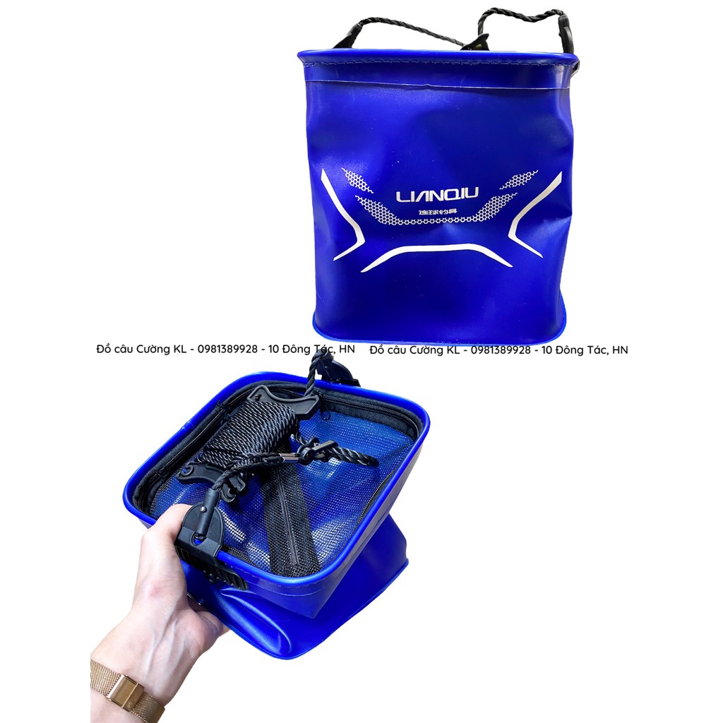 + Có kèm theo dây kéo dài để múc nước, có thể dùng làm thùng để rửa tay khi câu cá