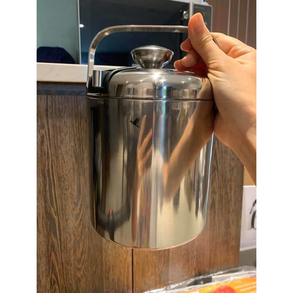 - Chất liệu inox dày dặn, vỏ 2 lớp nên giữ đá k tan trong nhiều giờ.
