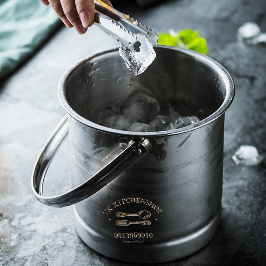 Xô đựng đá inox có quai xách kèm kẹp inox gắp đá, xô inox đựng đá hai ngăn tách đá và nước riêng biệt