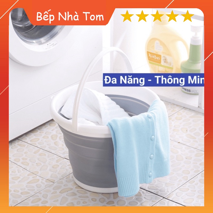 Xô Đựng Nước Gấp Gọn Có Quai Xách Tiện Lợi, Chất Liệu Nhựa Silicon An Toàn Dung Tích 5 Lít