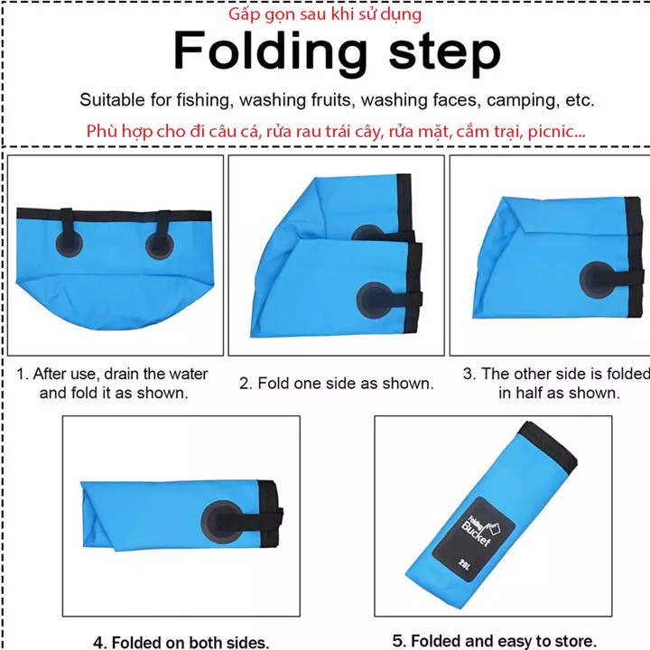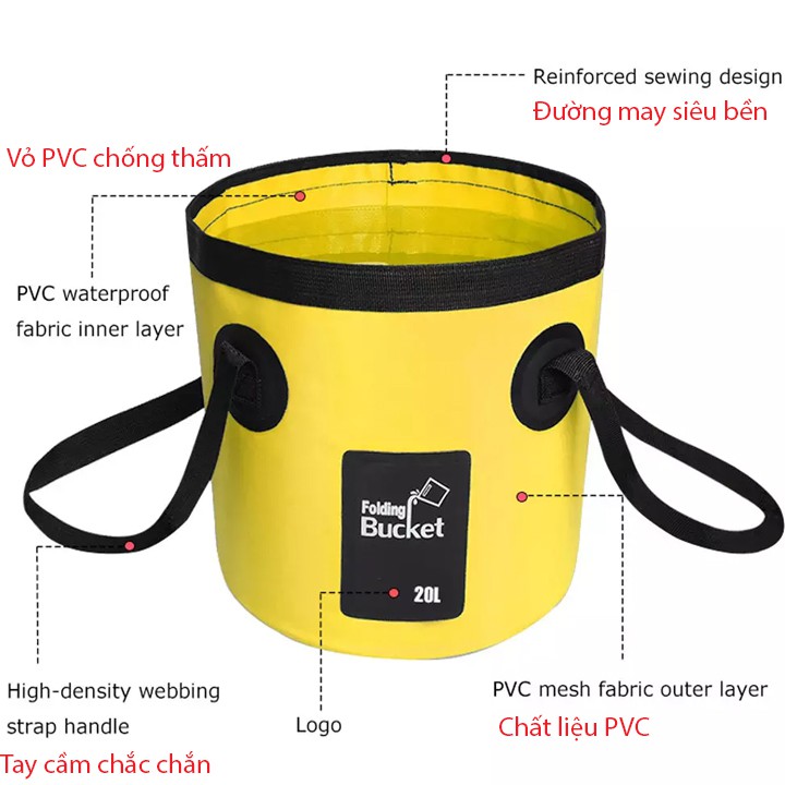 Công dụng: Sử dụng tiện lợi trong hầu hết mọi hoạt động hàng ngày như dùng làm xô đựng nước rửa rau, rửa xe, lau nhà, mang theo khi đi cắm trại, picnic....