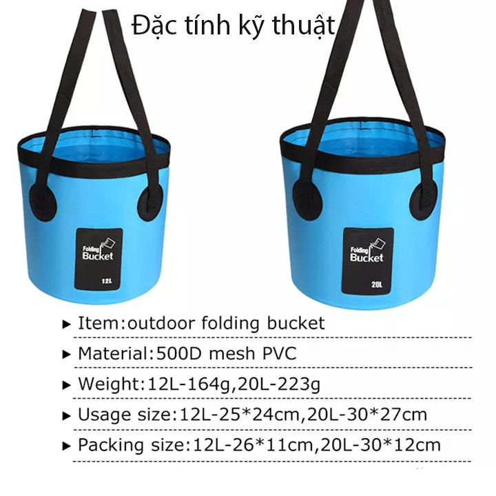 Xô đựng nước gấp gọn N10 dung tích 12LChất liệu nhựa PVC 500D dạng lưới đảm bảo sự chắc chắn cho sản phẩm. Xo có thể đứng dễ dàng khi đổ đầy nước mà không bị ngã