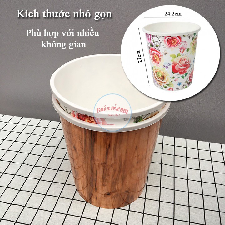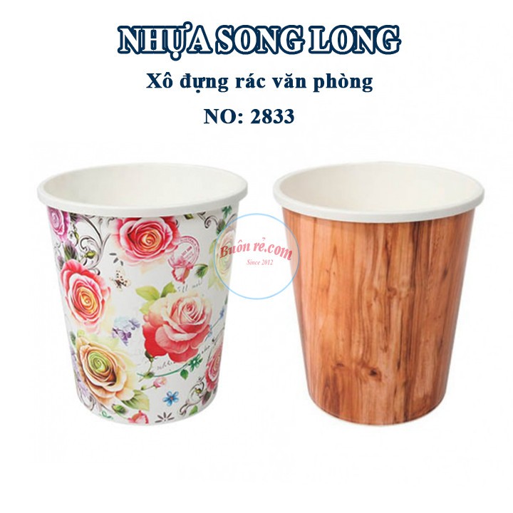 Xô đựng rác phòng ngủ, văn phòng NHỰA SONG LONG hoa văn đẹp mắt cao cấp (NO:2833) -Buôn rẻ 01021