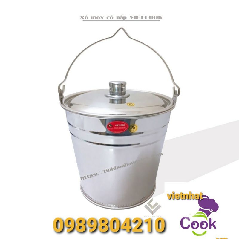 Xô inox 304 xô 3,5,8,12,17 lit xô 18,20,25,27,30 ,xô đựng nước ,gao, có nắp và không năp Vietcook