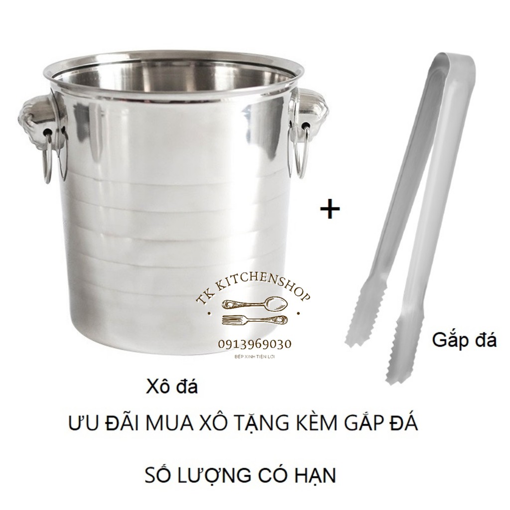 Xô inox đựng đá, ướp lạnh rượu bia tặng kèm một gắp đá inox, thích hợp sử dụng trong quán ăn, nhà hàng tiêu chuẩn 3 sao