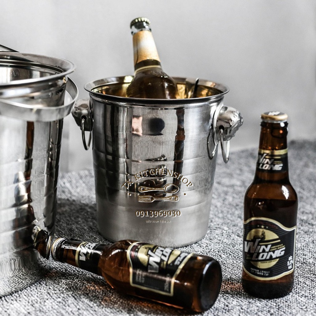 Xô đựng đá Inox/ Xô ướp lạnh rượu bia cao cấp HÀNG ĐÁY LIỀN KHÔNG PHẢI ĐÁY HÀN(Dày đẹp chắc chắn, mua 1 lần dùng mãiiii)
