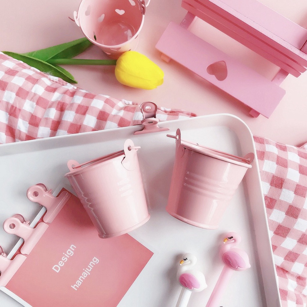 Xô mini đựng đồ decor , giỏ sắt nhỏ trang trí đa năng màu hồng dễ thương