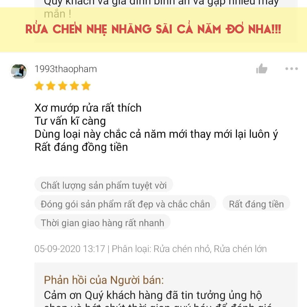 * Ngâm xơ mướp vào nước, sử dụng nước rửa chén cho thấm rồi rửa bát.