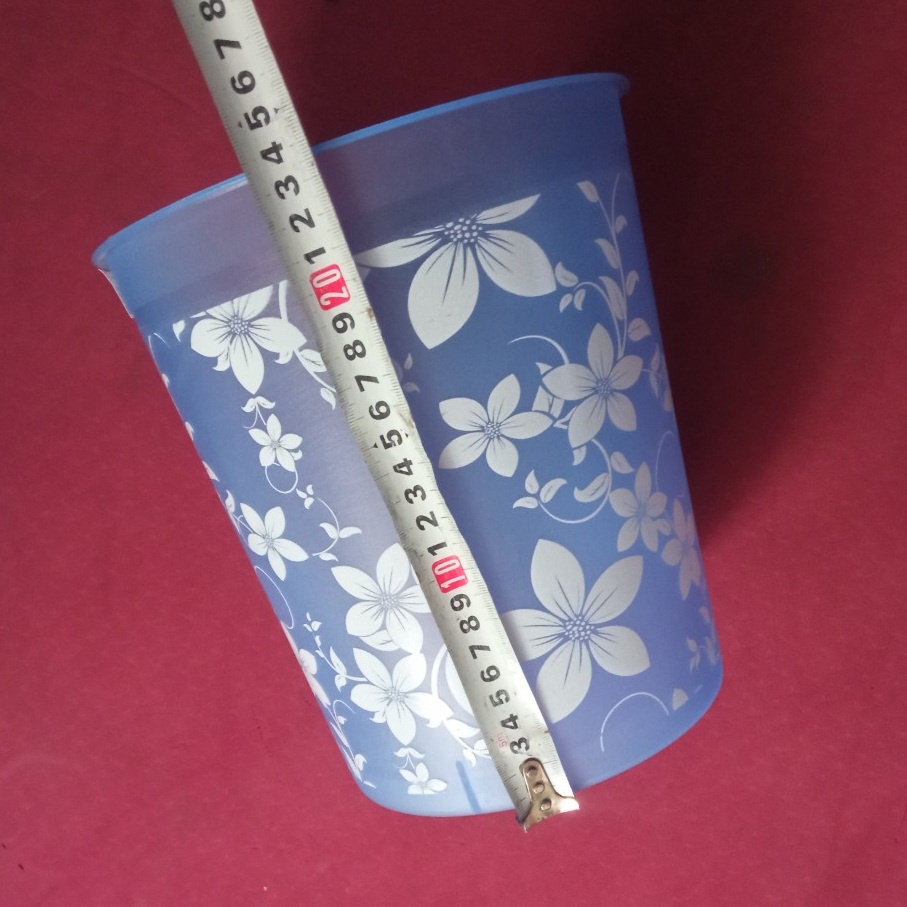 Kích thước: Cao 24cm. Đường kính miệng: 21cm, đường kính đáy: 17.5cmChất liệu: Nhựa mềm vừa, không bị vỡ kể cả khi bị rơi