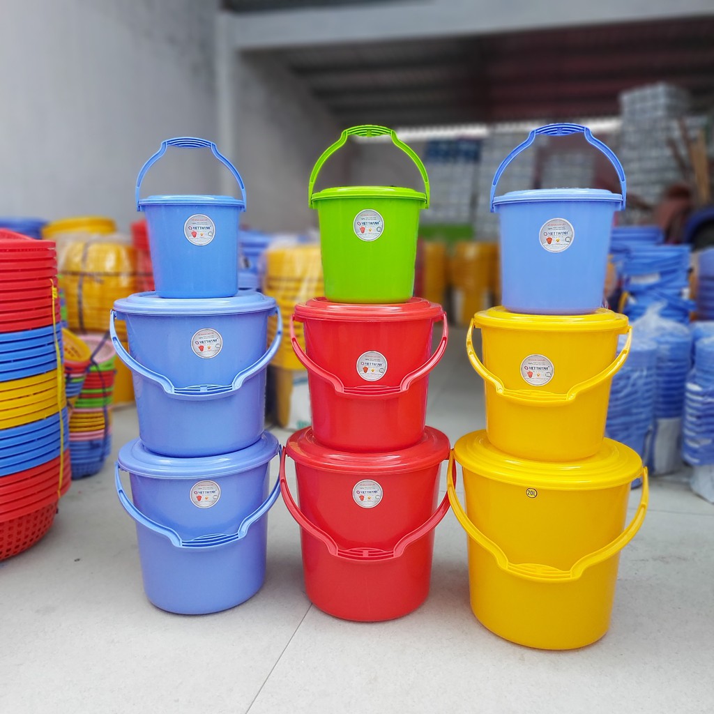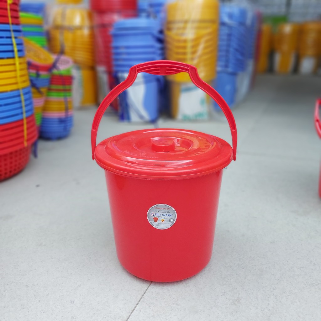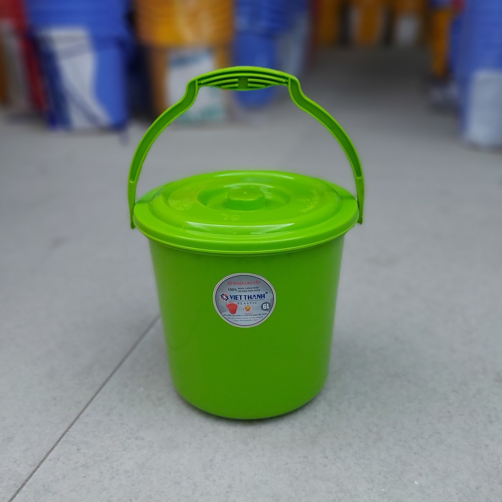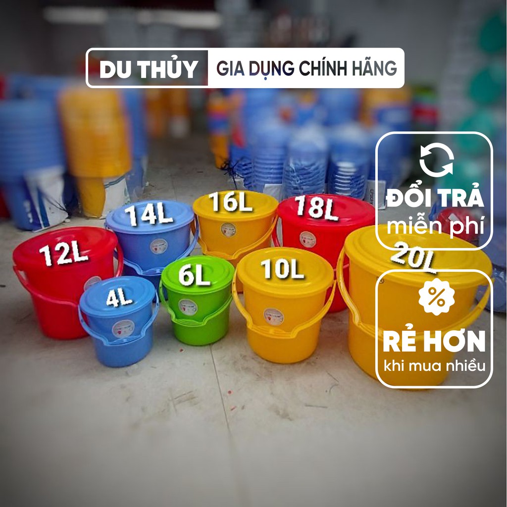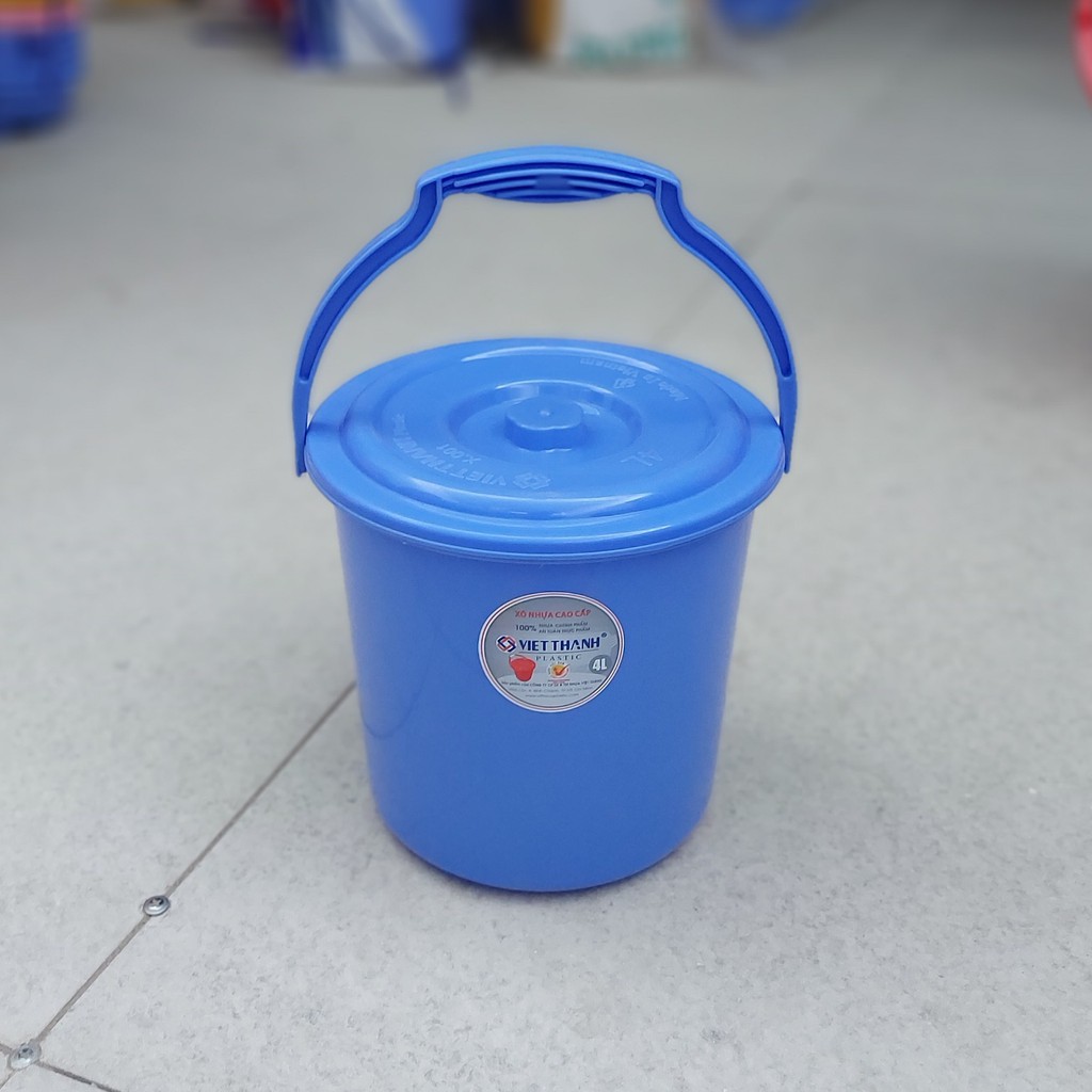 Nhà cửa & Đời sống > Dụng cụ chăm sóc nhà cửa > Chậu, xô & gáo nước || Xô nhựa tròn Việt Thành, có nắp, quai xách, loại nhỏ 4l - 10l, nhựa loại 1 dày, độ bền cao đẹp của gia dụng Du ThủyCòn hàng