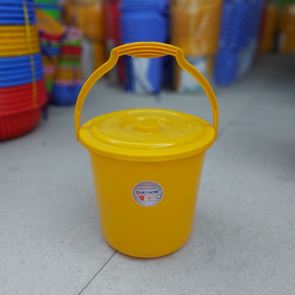 Xô nhựa tròn Việt Thành, có nắp, quai xách, loại nhỏ 4l - 10l, nhựa loại 1 dày, độ bền cao đẹp của gia dụng Du Thủy